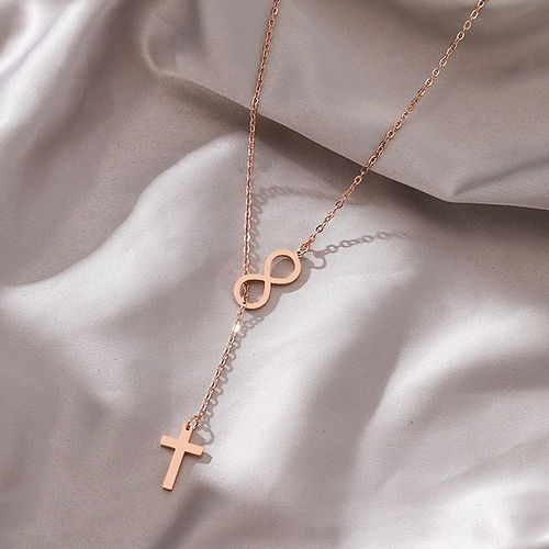 Embrace timeless elegance and faith with this Lariat Infinity Cross Necklace, a perfect symbol of devotion and style